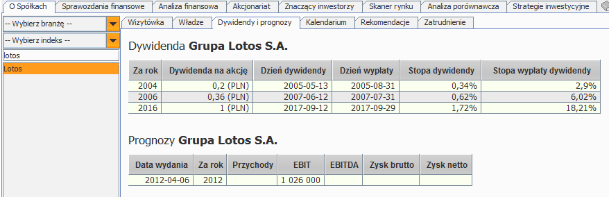 PGE zawiesza wypłatę dywidendy, z kolei w przypadku Lotosu, Lotos rozpoczyna wypłatę dywidend. Historia dywidend jest bardzo słaba patrząc na historię Lotosu. Rok 2004 i 2006. I teraz nagle, po tych świetnych wynikach za rok 2016, mamy 1 zł dywidendy (wypłata we wrześniu 2017):