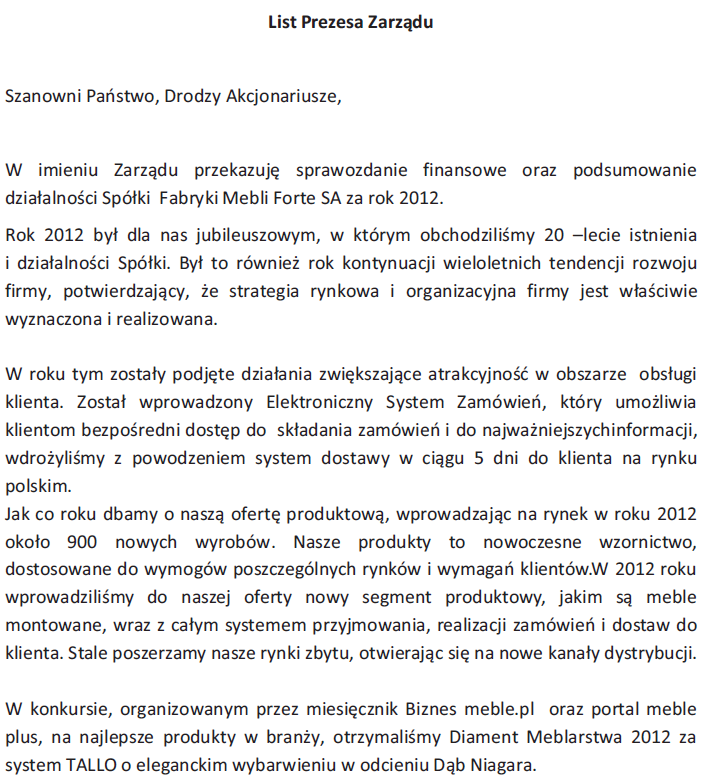 Dzięki temu, że jest to kilka lat mamy wgląd w to co działo się w spółce, co pisał Prezes, co się później zrealizowało a co nie: